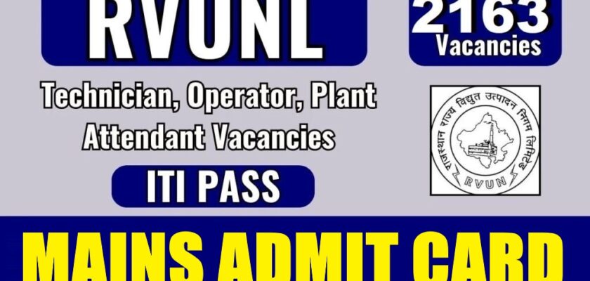 Rajasthan Rajya Vidyut Utpadan Nigam Ltd (RRVUNL), has released the Mains Admit Card on its official website for the Recruitment of Technician / Operator / Plant Attendant Examination 2026. The mains exam will be conducted on 23 February 2026, and the last date to submit the application form was 25 September 2025. Candidates can check their Mains Admit Card using their Enrollment Number, Registration Number, or Date of Birth by logging into the portal. The direct link is provided below. (Advt.No: RVUNL/ Rectt-2024/03 & Re-Advt.No: RVUNL/ Rectt-2024/06)